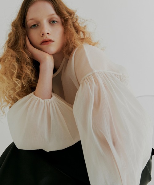 【シアー ボリュームスリーブ ブラウス】 ボリュームたっぷりの袖がポイント、 袖のボリュームとの相性を考えドロップショルダーデザインに。 ギャザーがたっぷり入っていても甘すぎない印象に仕上げています。 ショート丈でウエストラインを高く見せてくれる丈感、 身頃部分はすっきりとしたすとんとしたシルエットが特徴です。 縦のラインで凹凸のあるオーガンジー素材を使用。 透けすぎないほんのりシアー感が魅力。 洗濯してもすぐに乾き、しわになりにくい素材です。 首後ろのボタンを開けて被りで着脱していただく仕様です。 袖口にゴムが入っているので、腕まくりもしやすく、まくるとさらに袖のボリュームがふんわり強調されて可愛い。 シンプルだけど特徴的なデザインで、いろいろなボトムスと合わせていただきやすく、軽い素材なので重ね着もしていただきやすいです。 #KTWR28 中国製 素材: ポリエステル100% サイズ:FREE 着丈52cm 肩巾57cm バスト96m 袖丈53cm ― 備考 ― 伸縮性:なし 透け感:なし 〇〇〇〇● あり 生地の厚さ:薄い ●〇〇〇〇 厚い 手洗い:可 ドライクリーニング:可 ー Attention ー ※お届け予定時期は変更となる場合がございます。あらかじめご了承下さいませ。 ※商品のお色味は、お使いのバイスや撮影時の照明等により、実物と若干異なって見える場合がございます。 また、撮影ではサンプルを使用しておりますため、実物の商品と若干サイズ感や仕様が異なる場合がございます。 ※お取り扱いにつきましては、品質表示とアテンションタグを必ずご確認下さいませ。 【kiehtova -キエトバ-】 無駄のないミニマルな様式美をコンセプトに、 いつまでも美しく身につけられる実用性を追求したデザイン シンプルなコーディネートを格上げするこだわりのジュエリーなど 芯の強い女性のトータルコーディネートを提案します ≪お気に入り登録≫でお得な情報盛りだくさん ・“商品のお気に入り登録”で再入荷通知やラストの通知、セール通知も受け取ることができます。 ・“ブランドのお気に入り登録”で新商品や再入荷など、お得な情報を受け取ることができます。 ※ご注文いただいた予約商品のお届け時期の確認は、注文履歴ページより行えます。