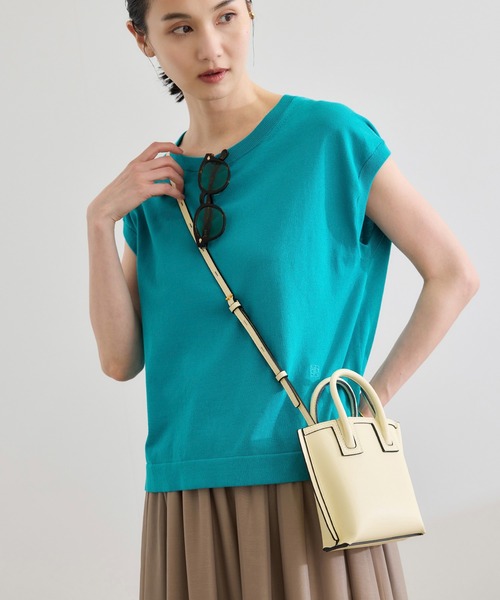 Tシャツ感覚で使える、一枚でもジャケットインでもきれいに着こなせるフレンチスリーブ【デザイン・シルエット】 色々なシーンで活躍する、ワンランク上の大人ベーシックプルオーバー。シンプルなTシャツのように着られ、肩先まで掛かったフレンチスリーブは、さりげなく二の腕をカバーしてくれます。 見頃に施したアナグラム刺繍がアクセントになっています。 【おすすめのスタイリング】 オンオフどちらでも合わせやすいシンプルなニットなので、ジャケットのインナーとして合わせたり、同シリーズのカーディガンとアンサンプルで合わせたりと着回しがききます。裾もリブではないのでボトムにインしてもアウトにしても綺麗に着用いただけます。 【素材】 1963年創業、イタリアSESIA社のオーガニックコットン。GOTS認定のオーガニック超長綿を更にガス焼き加工し、毛羽立ちのないクリーンな表面感と自然な光沢、すっきりとした手触りを実現。4/100という細番手の糸を4本撚糸することで糸に丸みが出て滑らかな肌触りとなっています。 ---------------------------- 透け感:なし 裏地:なし 伸縮性:あり 光沢感:なし 生地の厚さ:薄手 ポケット:なし 開き方:かぶり ---------------------------- 【モデル情報】 モデル身長:171cm 着用サイズ:F 【オーガニックコットン シリーズ】 同素材でデザイン違いの オーガニックコットンリブスリーブレスニット(品番:GGM25050) オーガニックコットンハイゲージカーディガン(品番:GGK25050) オーガニックコットンハイゲージフレンチスリーブニット(品番: GGM25060) がございます。 ※画像の商品はサンプルです。実際の商品と仕様、加工、サイズが異なる場合がございます。 ※撮影場所やライティング、お使いのモニター環境によって色の見え方が異なる場合がございます。 ※商品のカラーは画像の色味をご参照ください。動画は仕様説明のため、色味が実物と異なる場合がございます。