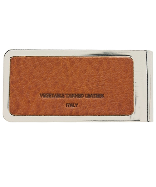 フェイスに本革を貼って仕上げられた、上品な印象のマネークリップです。 二つ折りにしたお札を5枚程度、折らないままだと10枚程度収納することができます。 重厚な雰囲気で、ビジネスシーンはもちろんフォーマルシーンでも活躍します。 シンプルで幅広い年齢の方にお使いいただけるデザインで、ギフトにもおすすめです。 重量:18g