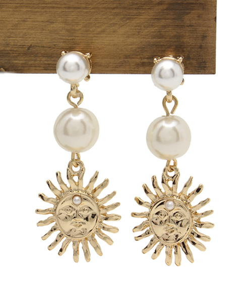 人気のサニーモチーフのトップがポイントのピアス♪ パールも付いているピアスなのでフェイス周りが華やかに♪