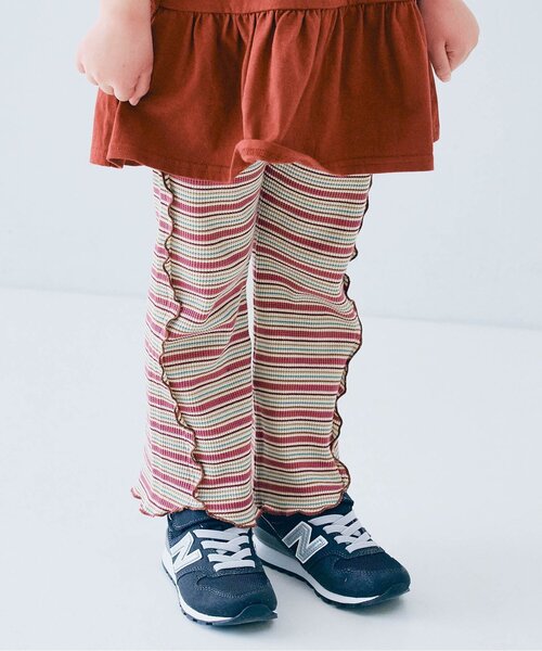 p.premierらしい配色がキュートなマルチボーダーシリーズ。 サイドのメロウがかわいいフレアパンツです。 生地は綿・ストレッチの薄手のボーダーワッフル素材。 ワッフル生地ですが薄手なので夏まで着られます。 同じデザインのノースリーブトップス・ハーフパンツ・ベビーロンパースもご用意しているので、 セットアップとして着たり、きょうだいでリンクコーデも楽しめます。 >> P210015 マルチボーダーワッフルトップス >> P222015 マルチボーダーワッフルハーフパンツ >> P233025 マルチボーダーワッフル前あきロンパース 【取り扱い表示】 40℃を上限に洗濯機で洗濯、デリケートアイテムモード、ネット使用、漂白剤を使用禁止、色物は同系の色と一緒に、洗濯後直ちに取出し、タンブル乾燥不可、日陰で吊り干し、低温でアイロン、商業ドライクリーニング不可 ※商品により多少の誤差が生じる事がございます。あらかじめご了承下さい。 ※ご使用のパソコンやブラウザの環境により、実際の色とは多少異なる場合がございます。 ※モデル着用写真についてはイメージの為、実際の商品とカラーや仕様が異なる場合がございますので、商品画像をご覧ください。 【 p.premier -ピードットプルミエ- 】 着心地のよい素材 細やかなシルエットまでこだわったデザイン コーディネートしやすいけれど存在感のある色使い シンプルで、それでいて今っぽい 男の子も女の子も気分で選べる 何気ない1日から、とっておきの日まで p.premierは ママの「こんなこども服がほしい」を とくべつな想いを込めて届けます