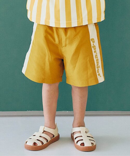 ちょっとスポーティーでレトロなイメージでデザインしたスイムショーツ。 p.premierのロゴがアクセントになっています。 落ち着いたカラー感でおしゃれに着こなせます。 ウエスト調節紐とメッシュのインナーパンツ付きです。 ラッシュガードとセットで着ていただくのもおすすめ。 ※画像の商品はサンプルです。 実際の商品と仕様、加工、サイズが若干異なる場合がございます。 ※目の細かい生地のインナーショーツの為、肌当たりも優しい仕様となっています。 【取り扱い表示】 最高液温40℃以下で手洗い、漂白剤使用禁止、色物は同系の色と一緒に、洗濯後直ちに取出し、タンブル乾燥不可、日陰で吊り干し、アイロン禁止、商業ドライクリーニング不可 【ご注意事項】 こちらの商品はUV加工(紫外線遮蔽率90%以上)が施されております。 ※商品により多少の誤差が生じる事がございます。あらかじめご了承下さい。 ※ご使用のパソコンやブラウザの環境により、実際の色とは多少異なる場合がございます。 ※モデル着用写真についてはイメージの為、実際の商品とカラーや仕様が異なる場合がございますので、商品画像をご覧ください。 【 p.premier -ピードットプルミエ- 】 着心地のよい素材 細やかなシルエットまでこだわったデザイン コーディネートしやすいけれど存在感のある色使い シンプルで、それでいて今っぽい 男の子も女の子も気分で選べる 何気ない1日から、とっておきの日まで p.premierは ママの「こんなこども服がほしい」を とくべつな想いを込めて届けます