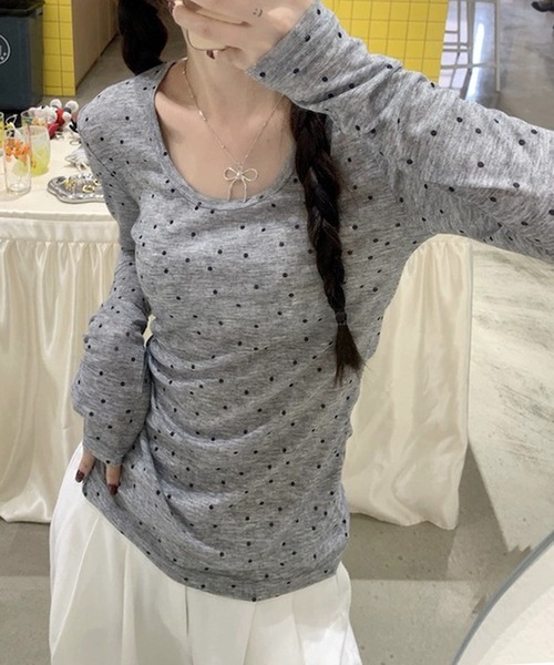 【 ドット Uネックカットソー 】 ◼︎ポイント -ドット柄 -Uネックライン -ロングスリーブTシャツ ◼︎おすすめコーデ シンプルにスラックスやデニムを合わせればキレイ目カジュアルなスタイルに。 Aラインスカート、ブーツカットなどのY2Kスタイルもおすすめです◎ ※商品画像は撮影時の光や角度により、実物の色味と異なって見える場合がございます。 ※撮影はサンプル品を使用しており、実際の商品と仕様・加工・サイズが若干異なる場合がございますので、予めご了承ください。 ※また、生産時期によりサイズやカラーに誤差が生じる場合がございます。予めご了承くださいませ。 【 MEMECLE 】 韓国ストリートやカジュアルスタイルのトレンドをミックスし デイリーに着やすい洋服から特別な日に着れるスタイルまで幅広く提案したブランドです。 「これ一枚で可愛い」を叶えます。 ★商品のお気に入り登録 完売カラーの再入荷や、ラスト1点のお知らせ、セール情報などの通知を受け取ることができます。 ★ブランドのお気に入り登録 新商品や再入荷など、お得な情報をいち早く受け取ることができます。 -ブランドの最新情報はinstagram【@memecle_official】でご確認いただけます! CZ_0002