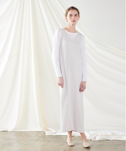 paper knit dress◆DESIGNシャリっとドライな独特の風合いが人気の和紙ニットシリーズ。シンプルなAラインシルエットのクリーンなロングワンピース。衿と袖ぐりの立体的なロール仕様がポイントです。前後を入れ替えて2WAYで着ていただけます。吸収性に優れた和紙混の爽やかさで、真夏でも快適。同素材のベルトつき。カットソーと重ねて春~晩夏まで長く活躍する1着です。◆FABRIC和紙の中でも高級原料のマニラ麻を使用した美濃和紙糸と、コットン・レーヨンを交撚した素材です。非常に軽くて張りコシがあり、さらっとした爽やかなタッチで通気性に優れています。【お手入れにつきまして】・タンブラー乾燥及び熱乾燥は収縮の原因となります。必ず常温での自然乾燥にして下さい。・お洗濯の際は裏側に向けネットを使用してください。・中性洗剤を使用し、やさしく押し洗いしてください。・洗濯後は形を整え、日陰で平干しにしてください。・水洗いにより多少の寸法変化や波うちが生じた際には、スチームアイロンで伸ばしながら形を整えてください。・シルエットを崩さない為に、ハンガーにはかけず畳んだ状態で保管して下さい。・着用の際はベルトやバッグ、周囲の壁など表面の粗いものとの摩擦や引っ掛かりにご注意ください。