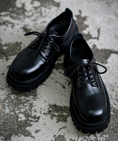 ボリュームのあるソールが今どきの雰囲気のポストマンシューズ。●アッパーに滑らかな質感で高級感のあるPU素材を採用●プレーントゥ、4ホール、ボリュームのあるソール●どんなシーンでも活躍してくれるブラックきれいめカジュアル、ノームコアファッションから韓国系ストリートファッションにもオススメのショートブーツ。年齢問わずオススメのアイテムです。