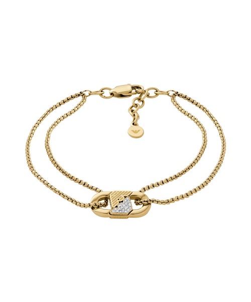 Emporio Armaniのゴールドトーンのステンレススチール製IDブレスレットは、お手持ちのジュエリーコレクションに美しい魅力をプラスします。上質なステンレススチールを使用し、ラグジュアリーなゴールドトーンに仕上げたこちらのブレスレットは、インターロッキングリンクときらめくクリスタルが特徴です。しっかり留まるロブスタークラスプが付いたエレガントなデザインで、あらゆるシーンで活躍します。こちらの優美なアイテムは、洗練されたスタイリッシュな魅力がさりげなく調和する、マストハブなレディース向けアクセサリーです。 コレクション名: 素材:ステンレススチール カラー:ゴールドトーン 仕上げ:艶出し 留め具のタイプ:ロブスタークラスプ 輸入: 正規品 保証:1年間 【 EMPORIO ARMANI について 】 1981年にイタリア、ミラノで誕生したブランド。デザイナーはジョルジオ・アルマーニ。着心地と自由な発想を大切にしながら、都会的で洗練されたアイテムの数々を提案しています。イタリア語でエンポリオとは「あらゆるものが手に入る大きな市場」という意味。その名のとおり、エンポリオ アルマーニではメンズ、ウィメンズの洋服、小物はもちろん、時計や香水、アンダーウェア、スポーツウェアなど幅広いアイテムを展開しています。 < ご確認ください > ※パッケージは実際の画像と異なる場合がございます。 ※外箱には、輸送時にキズや凹みが生じる場合がございます。あらかじめご了承ください。 ※ご利用のモニター環境や照明の影響により、実際の商品と色味が異なって見える場合がございます。 ※納品書は保証書の代わりとなりますので、大切に保管していただきますようお願いいたします。 ※商品タグに記載している価格につきまして、旧価格のものが混在している場合がございます。それにより、商品に表示されている価格と異なるタグが付いている場合がございますが、正しい販売価格はご注文時に画面に表示された価格となります。ご了承下さいますよう、お願い申し上げます。