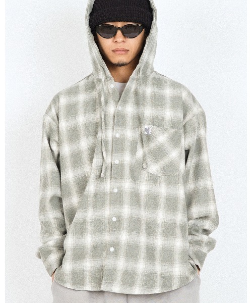 ■デザインポイント・シルエット・フードが付いたチェックシャツが登場。・胸ポケットにアイコンワッペンを施したシンプルなデザイン。・ゆったりとした身幅やドロップショルダーなど、抜け感たっぷりなオーバーサイズシルエット。・アウター使いはもちろん、ジャケットやブルゾンの中にインナーとしてもオススメな1着。■素材・生地感 ・綿100%でナチュラルな肌触りが心地よい素材を使用。・吸湿性にも優れており、快適に着用可能。