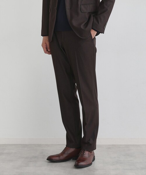 『上品な機能美が魅力』タケオキクチの新作「None Of Stress」シリーズ!次世代型ストレッチ素材と独自のパターン技術の融合により、最上の着心地を追求したジャケットとパンツが誕生。<素材へのこだわり>糸から染色加工までを一貫して国内で生産することで、良質な仕上がりを実現。合繊素材に珍しいピンヘッド柄が、どんなシーンにも対応可能にしてくれます。<パターンへのこだわり>伸長可能なウエストマジックを採用しながらも、シルエットを崩すことなくラクな穿き心地を楽しむことが可能。美しいテーパードシルエットは、パンツ単品使用の際にも欠かせない条件です。伸長可能なウエストマジックを採用し、前後からのシルエットを崩すことなく、楽な穿き心地を楽しむことができるオリジナル仕様。計算された股下寸と裾に向かってキレイにテーパードを掛けたシルエットは、セットアップはもちろん、単品パンツとしてのご使用もおすすめです。【仕様】・ポケット数:横×2 後ろ×2【素材・特性】日本の合繊素材の中心地の北陸合繊。その地区から生み出された次世代型ストレッチ素材です。ジャケット・パンツ素材にフィットするピンヘッド柄が秀逸で、遠目無地の無地柄素材で近年非常にタケオキクチでも人気のある柄になります。【おすすめスタイリング】インナーにはテーラードTシャツと呼ばれるクルーネックのジャージを合わせた、程よいリラックス感のあるスタイリングがおすすめです。※セットアップ対応可 組上:931-41009※こちらの商品は複数の国で生産しております。・ベトナム製・中国製原産国のご指定はできかねますので、予めご了承の上、ご注文いただきますようお願いいたします。※照明の関係により、実際よりも色味が違って見える場合があります。また、パソコン・スマートフォンなどの環境により、若干製品と画像のカラーが異なる場合もございます。モデル情報:身長186cm B88 W73 H92 着用サイズ:03(L)店舗へのお問い合わせ商品番号:931-71009●製品寸法:01(S):W77cm H96cm 股下82cm 前股上24cm 渡り幅31cm 裾幅18cm02(M):W80cm H98cm 股下82cm 前股上25cm 渡り幅32cm 裾幅19cm03(L):W84cm H102cm 股下82cm 前股上25cm 渡り幅34cm 裾幅19cm04(LL):W88cm H105cm 股下82cm 前股上25cm 渡り幅34cm 裾幅19cm備考: