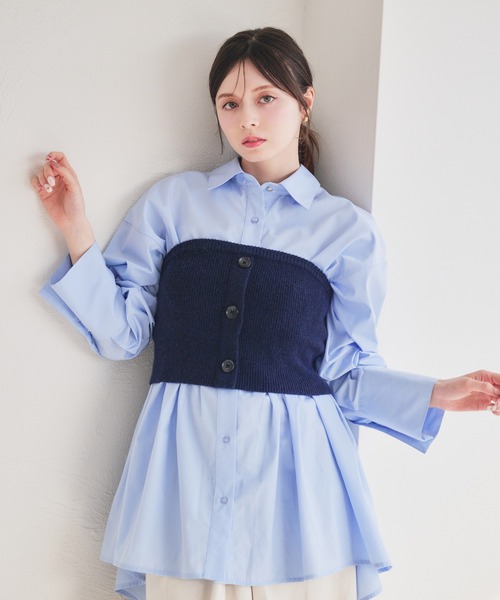 春マストなシャツブラウスとニットビスチェのセットアイテム ミニワンピースとしても使えるミドル丈のシャツは、ウエストにはいったタックが自然なスタイルアップを叶えます。 袖と首元のゴールドのボタンがアクセントに。春夏は羽織りとしてもお使いいただけます。 柔らかなニット素材のビスチェは他のシャツやカットソーなどに重ねるスタイリングにも。 別々でも着用でき女性らしくもカジュアルにも着こなせるため、幅広いコーデでご使用いただけます。 --------------------------------------- 生地の厚さ:★★★☆☆ 透け感:オフホワイトシャツのみあり 裏地:なし --------------------------------------- 【 Fupel / フペル 】 This is my precious story. わがままな乙女心に永遠のトキメキを。 年齢にとらわれないオトナな甘さ、 女性の魅力をより引き出すフェミニンなアイテムを提案いいたします。 -オフィシャルInstagramにて最新情報や限定情報を毎日更新中! ▼商品のお気に入り登録 完売カラーの再入荷通知や、ラスト1点、セールの通知をお知らせ致します。 ▼ブランドお気に入り登録 新商品や再入荷など、いち早くブランドの情報を受け取ることができます。 ※サイトに表示されているカラー名と実際のお届け商品に記載されているカラー名が異なる場合がございます。