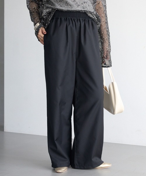\ご好評のため 5Lサイズ追加!/ 楽な履き心地なのにキレイ見えするイージーパンツ ■デザイン ウエストは太めのシャーリングゴムデザイン。 総ゴム仕様で、着脱しやすく楽な履き心地です。 脚がすっきりと見えるストレートシルエットに仕上げました。 便利なサイドポケット付きなのも嬉しいポイントです。 ■素材 さらっとした表面感でキレイ見えする軽い素材。 ロングシーズン着用可能な生地感です。 ■コーディネート トップスをインしていただくとウエストデザインがアクセントになり、スタイルアップ効果も期待できます。 きれいめにもカジュアルにも合わせやすいシンプルなデザインなので、トップスを選ばず着まわしの効く1本です。 ・ウエスト総ゴム ・サイドポケットあり ・お手入れ方法:洗濯機可 ・マルチサイズ/大きいサイズ対応(M/LL/3L/4L) --------------------------------------- 透け感:なし 裏地:なし 伸縮性:なし 生地の厚さ:普通 --------------------------------------- 【お買いものをよりお楽しみいただく為に♪】 ▼商品のお気に入り登録(ハートマークをクリック) お気に入りアイテムの再入荷やセールの通知も受け取ることができます。 ▼ブランドのお気に入り登録 新商品やクーポン配布などのお得な情報を受け取ることができます。 ■商品注意事項■ ※商品画像は、光の当たり具合やパソコンなどの閲覧環境により、実際の色味と異なって見える場合がございます。予めご了承ください。 ※末永く愛用頂く為に、アテンションタグ・洗濯ネームを必ずご確認の上、着用又はお取り扱い下さい。 ※生産時期により色味が多少異なる場合がございます。予めご了承ください。