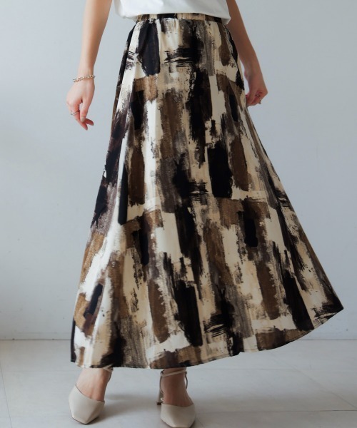 ■POINT 揺れるたびに気分を高めてくれるペイント柄スカート。つやっとした揺れ感のある軽やかな素材と、個性的だけど柔らかい印象のペイント柄が目を引くスカート。柄のニュアンスが優しい印象を与え、華やかさと大人らしさを両立します。ロング丈なので安心感があり、スタイルアップ効果も期待できます。ウエストの後ろ部分にはゴムを採用しているので、ストレスフリーな着心地。さらに裏地付きで透け感を気にせず、どんなシーンでも安心して着用できます。トップスをインしてもアウトにしても映える万能アイテムです。 ■FABRIC しわになりにくくお手入れが簡単で、軽やかな着心地が特徴です。つややかな表面感がエレガントな印象を引き立て、通気性も良いため春から夏まで快適に楽しめます。 ………………… 透け感:なし 裏地:あり ………………… ★商品のお気に入り登録 登録すると、完売しても再入荷時に通知を受け取ることができます。 ほかにもお得な特典があるかもしれません♪ ★ブランドのお気に入り登録 新商品や再入荷などの情報を受け取ることができますので、是非ご登録ください♪