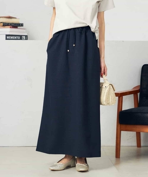 ◆デイリーに重宝するナロースカート◆ 【デザイン】 ・身体のラインが出ないリラックス感のあるシルエット ・長めの丈感が大人上品 ・ウエストはゴム仕様で着脱簡単 快適な履き心地 ・後ろスリット入りで足さばきすっきり 【素材】 ・シーズンムードがぐっとあがる春夏らしい麻調素材 ・夏もうれしい接触冷感素材 ・紫外線遮蔽率90%以上カット ・毛玉になりにくい素材を使用 ・ご家庭の洗濯機で洗えます ・洗濯後のお手入れが簡単なイージーケア仕様 【コーディネート】 トップスインもアウトサマになる着こなしを叶えるナロースカート。 Tシャツやシャツと合わせたラフな着こなしはもちろん、 ブラウスなどきれいめアイテム合わせもおすすめです。 -------------------- 透け感:なし 裏地:あり 伸縮性:なし 光沢感:なし 生地の厚さ:ふつう -------------------- ≪お気に入り登録機能の使い方≫ ■商品のお気に入り登録(ハートマークをクリック) 再入荷通知や値下げ等、お得なご案内を受けることができます。 -------------------- ※商品画像は、光の当たり具合やパソコンなどの閲覧環境により 実際の色味と異なって見える場合がございます。 商品の色味の目安は商品単体の画像をご参照ください。 ※34(XSサイズ)・42(XLサイズ)はWEB・一部限定店舗での販売です。