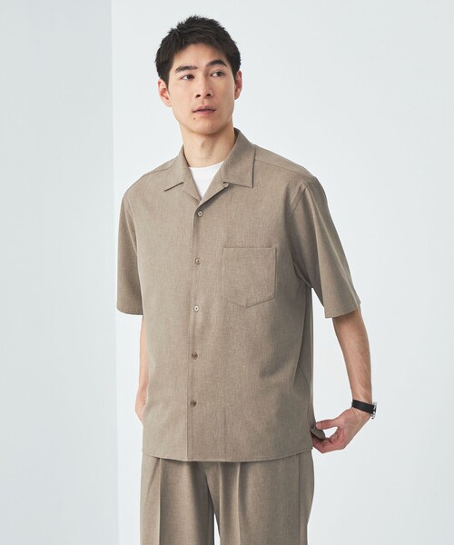 シンプルで上品見えする半袖シャツ ■デザイン グリーンレーベル リラクシング定番のジャストルーズシルエットの半袖シャツです。 ややゆとりを持たせたながら、上品見えするように工夫したサイズバランスが特徴。 オープンカラーで、フロントの胸ポケットがアクセントになっています。 ■素材 ポリエステルを使用した、ストレッチ・防シワ性のあるツイル素材。 シャリ感のあるさらっとした肌触りで、深みのあるシャンブレー生地が特徴です。 ■コーディネート 同素材パンツと合わせたセットアップスタイルがおすすめ。 インナーにはシンプルな無地のTシャツを着用し、襟元までボタンを留めた着こなし方が素敵です。 ゆとりのあるクリーンな素材なので、キレイメからカジュアルまで幅広く活躍。 ボーダーなど、柄のあるインナーの上から羽織った装いもいい感じです。 ・同素材のパンツのご用意もございます。対象品番:32141394227 ============================ 裏地:なし 透け感:なし 伸縮:あり 光沢感:なし 機能性:ストレッチ、防シワ(着用時シワになりにくい) ============================ 【注意事項】 ※商品を使用前に、タグ等に記載されている「取り扱い上の注意書き」、「洗濯表示」を必ずご確認ください。 ※商品画像は、光の当たり具合やパソコンなどの閲覧環境により、実際の色味と異なって見える場合がございます。あらかじめご了承ください。 ※商品の色味の目安は、商品単体の画像をご参照ください。 ※画像の商品はサンプルです。 店舗へお問い合わせの際は、全国のgreen label relaxing各店舗まで下記の品名/品番をお申し付けください。 品名:SC CHAMB TWL JL OP_A 品番:32161394227