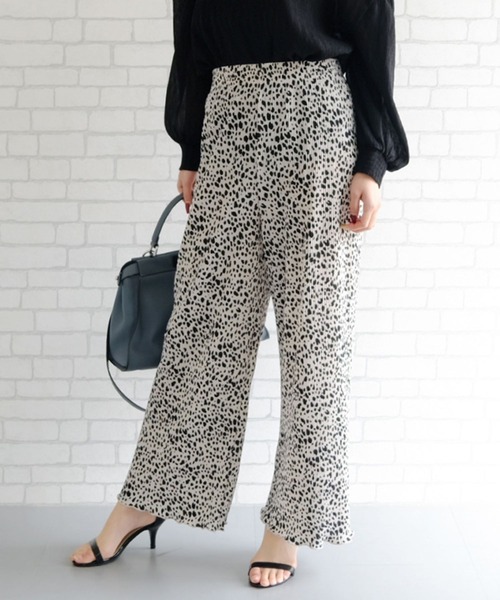 柔らかな履き心地で楽ちん、プリントプリーツパンツ はくだけできまる主役級アイテム♪ ウエストは総ゴムでストレスフリーな履き心地を叶えてくれます。【M】着丈:96.5cmウエスト:62cm~96cmヒップ:100cmわたり幅:64cm股下:63.5cm【L】着丈:98cmウエスト:64cm~98cmヒップ:102cmわたり幅:66cm股下:65cm※実寸(商品を実際に測った寸法)を記載しております。そのためお届けした商品の紙タグなどの表記と商品ページ上に掲載している表記が異なる場合があります。