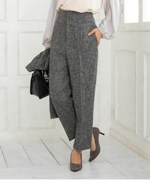腰を高く見せるハイウエストデザインに、センタープレス、ツイード調素材ときれいめ要素を盛り込んだ美脚パンツ。ウエストはダブルホックとファスナーで留める仕様。横に伸びるストレッチ素材で、動きやすいのも嬉しいポイント。アクアガレージのツイードシリーズは組み合わせ次第でスーツとしてもお使い頂けます!※オフホワイトは、当店のツイードシリーズと組み合わせてご使用すると、色誤差がございます。こちらの商品単品でのご使用をおすすめします。※画像をご確認ください。