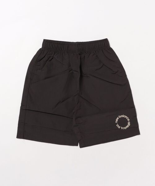 シボ感のあるナイロン素材を使用したキッズ用ウーブンショーツです。 ウエストは総ゴム仕様でドローコードも備えています。 前裾のNBサークルリニアロゴがアクセント。 ハンドポケット、右ヒップポケット付き。 ABS55522