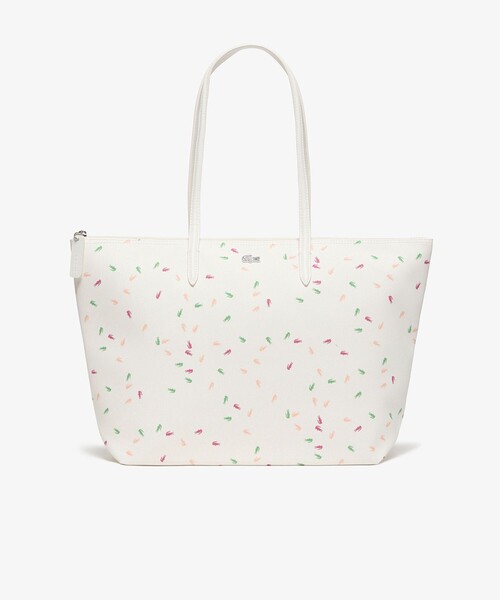 春夏らしいマルチカラーのワニロゴ全面プリントが華やかなトートバッグ ・鹿の子地の表情をエンボスしたリサイクルPVC素材 ・マルチカラーのワニロゴプリントをボディ全域に ・荷物を安全に収納するジップクロージャー付き ・エレガントなレザー調ハンドル 35cm x30cm x14cm