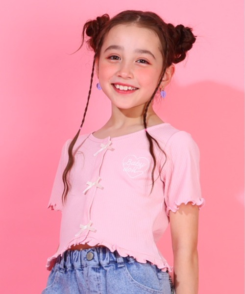 トレンドのリボンデザインがかわいいカーディガン風のTシャツ♪ 柔らかい肌触りと伸縮性の良いリブ素材は着心地も抜群◎ フリルもガーリーで、これ1枚で流行りのバレエコアコーデに★ ■仕様 リブ素材 バインダー衿 袖口メロウ 裾フリル、メロウ始末 刺しゅう サテンリボン ◆BABYDOLLとは◆ カラフルPOPなデザインに王冠マークが特徴の子ども服ブランド「BABYDOLL(ベビードール)」を中心にキャラクターコラボアイテムも充実した、大人から子どもまで家族みんなでおそろいできるファミリー向けファッションブランドです。 ジュニア向けサイズのアイテムも展開中★ 日常使いしやすいカジュアル・シンプル・スポーティなデイリーウェアやお出かけにも使えるおしゃれなアイテム、お手頃価格なプチプラアイテムも充実!トレンドの韓国風ファッションの着こなしも出来ちゃいます★ ベビー・キッズなどの子供服・子供用品から、レディースライン、ユニセックスなどの大人向けアイテムまで揃い、 家族や友達や兄弟、カップルで双子コーデやペアルックなど女の子、男の子問わずみんなでオシャレを楽しめるショップです♪ ■おすすめ季節 春、夏、秋、冬のロングシーズンで着回しいただけます。 ■おすすめシーン 保育園・幼稚園・学校への通園通学、お散歩などの日常のシーン、 学校行事の遠足、ピクニックなど動きやすさ重視の時にも♪ 休日の遊びや遊園地などへのお出かけ、バーベキュー(BBQ)などのイベントやレジャーでみんなと差をつけたいときも♪ 旅行や春休み、夏休み、連休などの特別な日にも♪ 毎日ベビドコーデを楽しんじゃお★ ■おすすめ着用年齢 ベビー:未就学児、キッズ:年少、年中、年長、小学生1年生、2年生、3年生、4年生、5年生、6年生、中学生、などベビーからキッズまで幅広く展開★ サイズ展開は80cm、90cm、100cm、110cm、120cm、130cm、140cm、150cm、160cmまでの幅広いサイズ展開をご用意♪ ■サイズ(単位:cm) 90cm 着丈:28 胸回り:48 肩幅:19 裄丈:22 100cm 着丈:30 胸回り:52 肩幅:21 裄丈:23 110cm 着丈:32 胸回り:56 肩幅:23 裄丈:25 120cm 着丈:34 胸回り:60 肩幅:25 裄丈:28 130cm 着丈:36 胸回り:64 肩幅:27 裄丈:30 140cm 着丈:39 胸回り:70 肩幅:30 裄丈:33 ※商品により多少の誤差あり。 【お気に入り登録でお得にお買い物】 ・「商品のお気に入り登録」でセール通知、再入荷通知や、ラスト6点の通知を受け取ることができます。 ・「ブランドのお気に入り登録」で新商品や再入荷、セール情報など、お得な情報を受け取ることができます。
