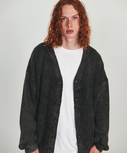 Revo.(レヴォ)◆2025SS Collection◆ユーズドライクな表情がこなれ感のあるルーズニットカーディガンふっくらとしたボリューム感が魅力のワッフル編みニット素材のカーディガン。パウダー加工を施し古着ライクな色褪せ感がポイントです。凹凸のあるワッフル素材は肌を包み込むようなふわっとした柔らかな生地感と、スウェットのようなライトな着心地が魅力。身幅と肩幅に余裕を持たせた程よくゆったりとしたルーズシルエットで、トレンドライクな着こなしが楽しめます。一枚でメインアイテムとして、ブルゾンやスプリングコートなどのインナー使いとしても◎。ブラック、グレージュ、ブルー、マスタードの4色展開。定番からファッションのポイントになる差し色まで揃えた豊富なカラバリが◎。スラックス、革靴などと合わせてアダルトな雰囲気に、ダメージデニムパンツやカーゴパンツ、サイドラインパンツなどと合わせればトレンド感溢れるストリートコーデに仕上がります。ワッペンや缶バッジ、刺繍等で自由にカスタムしてオリジナルに仕上げるのも◎。シンプルなデザインでスタイルを問わずデイリーに活躍してくれる万能なベーシックアイテムです。▶今季注目のフェード加工を施したニットカーディガン▶凹凸のあるワッフル編みのニット素材で柔らかな着心地▶インナーのアレンジも広がるVネックデザイン▶程良いリラックスフィットシルエット▶ダボっとしたルーズ感がこなれた雰囲気を演出▶シンプルなデザインがボトムスを選ばず着回し力抜群▶女性の方でも着用して頂けるユニセックスデザイン▶キレイめにもカジュアルにも落とし込める1枚▶旬なグランジ系ストリートスタイルにも◎-------------------------------------------------生地の厚さ:普通裏地:なし透け感:なし伸縮性:ありポケット:なし-------------------------------------------------COORDINATEデニムやチノパンを合わせたカジュアルスタイルから、パラシュートワイドパンツやトラックパンツと合わせたストリートスタイル、フレアパンツやスラックスなどと組み合わせた現代風なモードスタイルまで幅広く◎。インナーにロンTやシャツ、スウェット、パーカーを合わせたレイヤードスタイルや、きれいめなジャケットやコートと合わせたミックススタイルもGOOD。春の羽織のメインアイテムとして、秋冬シーズンにはレザージャケット、MA-1、キルティングジャケット、スタジャン、ピーコート、ダッフルコート、チェスターコート、モッズコート、ダウンベスト、ダウンジャケットなどのインナー使いとしてロングシーズン重宝します。足元はスニーカーは勿論の事、ローファー、アンクルブーツ、レザーシューズなどの革靴で上品な雰囲気の合わせもおすすめです。スタイルのアクセントとして、スマホショルダーやボディバッグ、巾着バッグ、バケットハット、サングラスなどの小物使いもGOOD。男性は勿論オーバーサイズコーデで女性にも、メンズ・レディース問わずユニセックスにお使い頂けます。Revo.音楽、古着、ワーク、ミリタリー etc ...様々なカルチャーやライフスタイルからインスパイアされたアイデアを、素材の風合いを活かしたベーシックアイテムへとアウトプット。シンプルな中にも「匂い」を感じるナチュラルスタイルを提案します。=================================◆気になるアイテムは≪お気に入り登録≫がオススメ!入荷情報やクーポン、セール情報のお知らせを受け取ることができます。=================================※撮影画像はサンプル品を使用しているため、実際の商品と仕様、加工、サイズが若干異なる場合がございます。また、可能な限り実物に近いカラーにて掲載していますが、使用しているパソコンのモニター設定や、携帯電話のメーカー・機種により実際のカラーと異なって見える場合がございます。予めご了承ください。