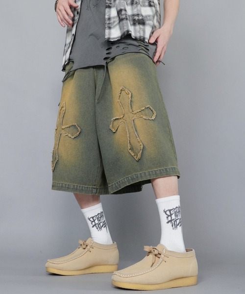 膝が隠れる“ちょうどいい丈感”。 【DESIGN】 デニム特有の硬さを抑え、 長時間の着用でもストレスフリー。 フロントに今年注目のトレンドモチーフ 「クロス/十字架」をデザイン。 裾に向かって広がるワイドシルエットで、 ヴィンテージライクな色が、 韓国ストリートコーデやグランジコーデとも相性抜群。 春夏はスニーカー、秋冬はブーツ合わせで 季節を問わず活躍してくれる万能アイテムです。 【FABRIC】 内側にはウエスト調節紐を備え、 自分好みのフィット感に調整可能。 長時間履いても疲れにくい、 毎日でも穿きたくなる快適さがポイント。 シーズンレスで着まわしやすく、 1本は持っておきたい注目のハーフ/ショートデニムパンツです。 ………………… シルエット:ワイドパンツ 丈:やや長め ウエストゴム: あり 透け感:なし 裏地:なし 伸縮性:なし 生地の厚さ:普通 ……………… 【推奨サイズ】 サイズM:~170cm サイズL:171cm~ ※標準体型を基準とした目安になります。 ※掲載画像(商品、モデル着用とも)につきまして、撮影環境やお客様の閲覧されますパソコンや携帯電話キャリアによって、実際の商品とは多少異なった色に見える場合があります。 また表示のサイズ感も実物とは若干異なる場合もございますので、予めご了承ください。 ※タグ・バーコードのついたシールには、サイトのご案内と異なるカラー名が記載されていることもございます。ご了承ください。 - - - - - - - - - - - - - - - - - - - - - - - - - - - - 【「お気に入り登録」でお得な情報が届きます】 ・「商品のお気に入り登録」で再入荷通知、ラスト1点の通知、セール通知などを受け取ることができます。 ・「ブランドのお気に入り登録」で新商品、人気アイテムの再入荷など、お得な情報を受け取ることができます。 - - - - - - - - - - - - - - - - - - - - - - - - - - - -