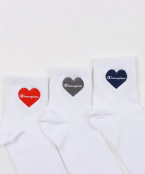 【3足組クォーターレングス丈ノンパイル仕様のソックスです】●外側にはChampion®(チャンピオン)ロゴを入れたアイキャッチな大きなハート刺繍。●内側にはワンポイントのCロゴを編み、コーディネートに合わせて履き方を変えられる2wayデザイン仕様です。●異なる刺繍色・Cロゴカラーの同色アソート。・サイズ:23cm~25cm・・・・・・・・・・・・・・・・・・・・・・~お気に入り登録のオススメ~☆商品のお気に入り登録再入荷、残り1点、セールなどの情報通知を受け取ることができます。☆ブランドのお気に入り登録新商品や再入荷、ショップのおすすめトピックスなど、最新情報を受け取ることができます。・・・・・・・・・・・・・・・・・・・・・・※掲載画像に関しましては、屋外や屋内での光の当たり方やパソコンやスマートフォンなどの閲覧環境によって実際の色味と異なる場合がございます。予めご了承ください。※サイト内でのカラー名と、お届け商品に記載されているカラー名が異なる場合がございます。※着用・お取り扱いの際は、商品についている品質表示とアテンションタグを必ずご確認ください。