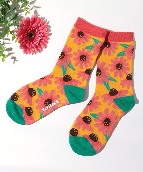 足元を華やかに彩るフラワー柄ソックス カラフルなお花が足元を彩るクルーソックス。 スカートにも合わせやすい18cm丈。 各カラーのお花はネイティブアメリカ、モロッコ、インドにちなんだ花をモチーフにしています。 サイズは23-25cmです。 ■カラー ブラック(インドヤコウボク):西インド諸島原産の夜に咲くとても良い香りのお花。 ブルー(ラナンキュラス):エキゾチックな印象のお花。モロッコの地名が付けられている品種もあります。 イエロー(エキセアナ):ネイティブアメリカの先住民が大切にしてきたハーブ。 【TITICACAのお買いものをお楽しみいただくために!】 ▼商品のお気に入り登録 完売カラーの再入荷通知や、ラスト1点の通知、セールの通知も受け取ることができます。 ▼ブランドのお気に入り登録 新商品や再入荷など、いち早くブランドのお得な情報を受けることができます!