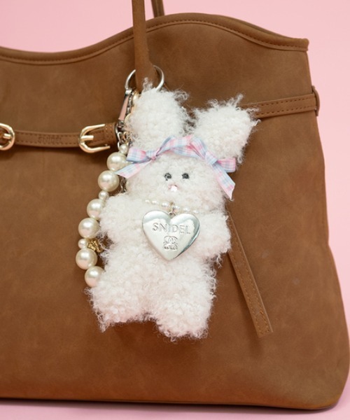 【USAGI ONLINE限定、トレンドライクなプードルファーを使用したウサギチャームが登場】 【Design/Styling】 SNIDELオリジナルでお作りした、愛らしいチャームがUSAGI ONLINE限定で登場!思わず抱きしめたくなるふわふわとしたマスコットが付けているのは、SNIDELロゴが刻印されたキュートなハートのネックレス。つぶらな目に、お鼻のビーズと頭部のリボンが2つ付き、愛らしいデザインです。キャンパスバッグやボストンバッグ、スマートフォンや鍵に付け、お出かけ先でもいつも一緒に。お友達とお揃いにしたり、プレゼントにもおすすめのアイテムです。通常品番(SWGG251653)とは生地、リボン、お顔のパーツなどがそれぞれ違うのでお気に入りのデザインを探してみて。ホワイトとピンクの2色展開です。どちらもチェック柄のリボンをあしらい、可愛らしく仕上げました ※照明の関係により、実際よりも色味が違って見える場合があります。 またパソコン・スマートフォンなどの環境により、若干製品と画像のカラーが異なる場合もございます。予めご了承ください。 商品の色味は、商品単品画像をご参照下さい。 ※商品画像はサンプルのため、色味やサイズ等の仕様に変更がある場合がございますので、予めご了承ください。