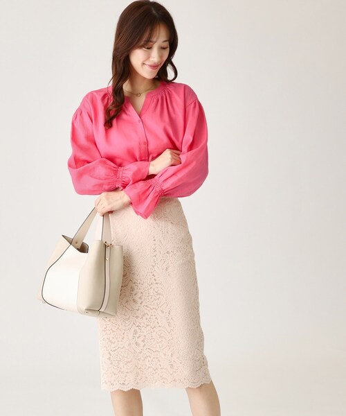 〇デザインポイント 軽くてソフトな風合いのラミー100%のギャザーブラウス。 衿部分に細かく繊細なギャザーデザインで顔回りを華やかに仕上げました。 袖口はプッシュアップし易いゴムシャーリング仕様にしています。 肌離れの良いラミー素材は長い夏に向けて着て頂けます。 ベーシックカラーに加えて映えるカラーも展開、パンツにもスカートにも合わせやすいおすすめのアイテムです。 〇素材ポイント 長い夏に向けて着て頂ける、軽くてソフトな風合いのラミー100%素材。 〇スタイリングポイント デニムやスニーカーを合わせたカジュアルスタイリングはもちろん、柄スカートを合わせたエレガントなスタイリングも華やかさが増しおすすめです。羽織として着ていただくこともできます。 ※照明の関係により、実際よりも色味が違って見える場合があります。また、パソコン・スマートフォンなどの環境により、若干製品と画像のカラーが異なる場合もございます。 モデル情報:身長171cm B77 W62 H86 着用サイズ:38(M) 店舗へのお問い合わせ商品番号:187-82411 ●製品寸法: 34(SS):着丈61cm B100cm 袖丈49cm 裄丈72cm 36(S):着丈63cm B103cm 袖丈51cm 裄丈74cm 38(M):着丈64cm B106cm 袖丈52cm 裄丈75cm 40(L):着丈65cm B109cm 袖丈53cm 裄丈77cm 備考: