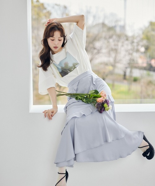 ーーーアシンメトリーのティアードフリルが華やかなフレアスカートーーー■point・コンパクトトップスと相性のいいボリューム感◎・微光沢で落ち感のあるサテン素材を使用することで大人も着やすいデザインに・バックデザインは1段フリルでスッキリ見え・ウエスト後ろはゴム仕様で履き心地◎・洗濯機洗いが可能です■stylingジャストサイズなトップスを合わせてフェミニンに着こなすのがおすすめです。ヒールのあるシューズと合わせるとよりスタイルアップできます♪※屋外の光や照明の当たり具合で、実際の商品の色味とカラー別画像の色味に若干の違いが発生する場合がございます。 詳細画像と併せてご確認の上、ご注文いただきますようお願い致します。【INFOMATION】■商品のお気に入り登録完売していても再入荷時に再入荷通知を受け取ることができますので、是非ご登録ください!■ブランドのお気に入り登録新商品や再入荷などの情報を受け取ることができますので、是非ご登録ください!