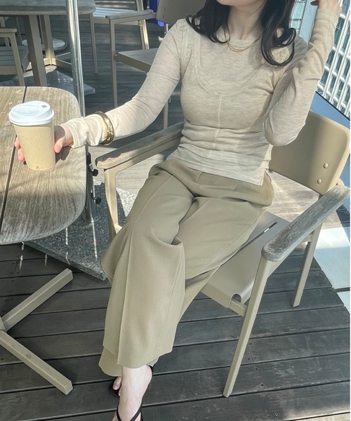 単品使いも万能! 一枚でこなれ感あふれる、レイヤードトップス。 【デザイン】 ・タンクトップと長袖トップスのセットアイテム。 ・程よいフィット感がありながら、リラックスした印象のシルエット。 ・絶妙な丈感とオーバーなレイヤリングで、大人カジュアルに仕上がるデザイン。 【素材】 ・柔らかな肌触りと自然な落ち感が魅力。 ・程よい透け感のある素材。 ※ウォッシャブル加工(手洗い可) 【着こなしポイント】 ・セットアップとしてレイヤードスタイルで、そのままトレンド感のある着こなしに。 ・タンクトップをインナーとして合わせたり、プルオーバー一枚でまとめて別々に使うのも◎ ・一枚でトレンド感のあるスタイルに仕上がります。 ※製品寸法は平置きのスペックとなっております。こちらの商品は伸縮性があります。 ーーーーーーーーーーーーーーーーーーーーーーーーーーーーーーーーーー 気になるアイテムはお気に入り登録がおすすめ! お気に入り登録で、再入荷通知やお値下げ情報をお知らせ。 お得な情報をいち早くお届けいたします! アイテムページにある、ハートマークをクリックして追加できます。 ーーーーーーーーーーーーーーーーーーーーーーーーーーーーーーーーーー ※照明の関係により、実際よりも色味が違って見える場合があります。また、パソコン・スマートフォンなどの環境により、若干製品と画像のカラーが異なる場合もございます。 店舗へのお問い合わせ商品番号:R91-12008 ●製品寸法: 02(M):プルオーバー着丈59cm プルオーバーB75cm プルオーバー袖丈64cm プルオーバー肩幅37cm ビスチェ着丈47cm ビスチェB77cm ビスチェ肩幅37cm 備考: