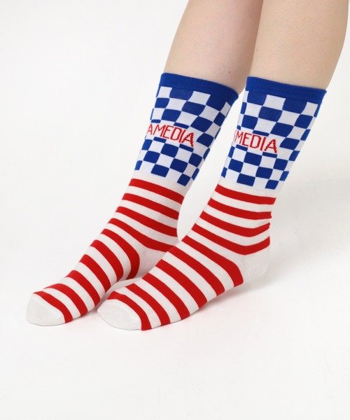 チェッカーとボーダーミックスの日本製ソックスチェッカーフラッグとボーダーという、シンプルながらもインパクトのあるパターンをミックスしました。足元にカラーアクセントがあるので、いつもの装いが華やかになります。軽装の季節にインパクトを出すのにもぴったりのアイテム。丁寧で繊細な仕上がりの国内製品です。<日本製ソックスのおすすめのポイント>●良い素材を厳選して糸づくりから手間をかけている ●靴下専門の職人が製法にこだわり丁寧に作っている●劣化しにくく、肌触りがよく色褪せしにくい----------------------------------------------------------------------◆◆お気に入り登録しておすすめ情報をゲットしよう◆◆【商品のお気に入り登録】再入荷、残り1点、セール、タイムセール、クーポンなど、いち早く受け取ることができます。【ショップ・ブランドのお気に入り登録】新商品、予約商品、再入荷、ショップのおすすめトピックスなど、ショップ・ブランドの最新情報を受け取ることができます。----------------------------------------------------------------------※画像の商品はサンプルです。実際の商品と仕様、加工、サイズが若干異なる場合がございます。※撮影場所により、光の当たり具合で色味が異なって見える場合がございます。商品写真はできる限り実物の色に近づけるようにしておりますが、実際の商品と色味が異なる場合がございます。カラーは商品の掛け画像をご参照下さい。