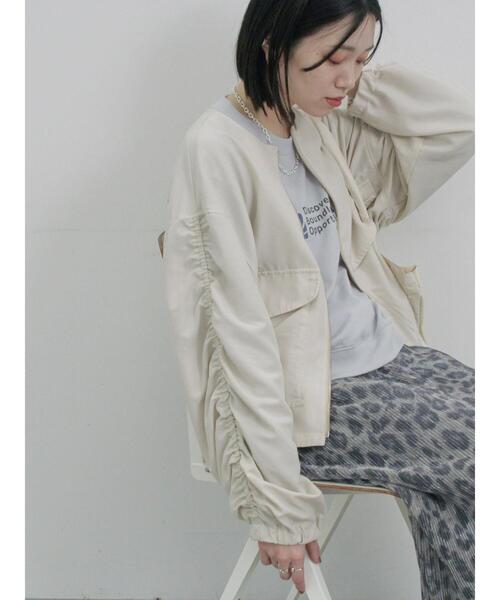 くしゅくしゅとギャザーを寄せたスリーブが甘さをプラスするブルゾン。 光沢感とドレープ性のある柔らかな生地使いも大人の女性らしさを演出。 シンプルなノーカラーで合わせやすく、定番のカジュアルコーデにはもちろんワンピースやスカートと合わせたスタイリングにもマッチしてくれます。 ※商品画像は、撮影環境やお客様のご利用のPC・スマートフォンのモニター環境などにより実物と色味に差異がある場合がございます。