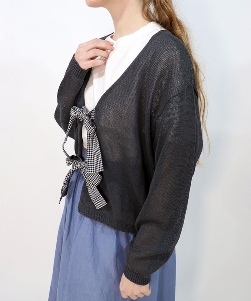 フロントに並んだリボンがかわいいカーディガン。 和紙素材の細い糸で編んだ薄手のニットで ゆったりとしたサイズ感がポイント。軽くゆるっと着られるアイテムです。 コーディネートのアクセントになるので シンプルなボトムやワンピースと合わせるのがおすすめです。 ◇洗濯:ドライクリーニング ◇裏地:裏地ナシ 【商品に関するご注意】 ※取り扱いについては、商品についている品質表示でご確認ください。 ※商品画像はサンプルのため、色味や仕様、サイズ感など変更がある場合がございますので予めご了承ください。 ※プリント生地の商品については、生地の裁断・縫製方法により写真と同様の柄が出ない場合がございます。 ※照明の関係により、実際よりもやや明るく見える場合がございます。 また,お使い のパソコンのモニター環境によって、実際の商品と画像のカラーが多少異なる場合もございます。予めご了承ください。 ※サイズ表記は、2cm程度(ニットの場合は2~4cm程度)の誤差が生じる場合がございます。 上記予めご了承いただけますようお願いいたします。 【 Information 】 ■商品のお気に入り登録 完売していても再入荷時に再入荷通知を受け取ることができますので、是非ご登録ください♪ ■ブランドのお気に入り登録 新商品や再入荷などの情報を受け取ることができますので、是非ご登録ください♪
