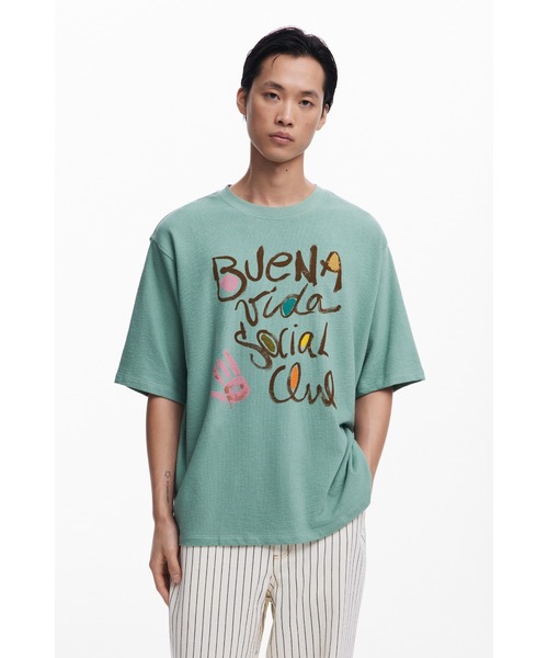 爽やかなミントグリーンベースに、手書き風の温かみのあるスペイン語メッセージ「Buena Vibra Social Club」をプリントした、ポジティブなエネルギー溢れるTシャツ。ブラウンとピンクのコントラストカラーで描かれた文字が、まるで手作りのサインペインティングのような親しみやすい印象を演出します。 ミントグリーンの優しいカラーリングが、リラックス感と親しみやすさを同時に演出しています。シルエットは程よくゆとりのあるレギュラーフィットを採用し、リラックス感がありながらもバランスの良いプロポーション。ポジティブなメッセージとともに明るい気持ちで過ごせる特別な一枚です。 ********************** 生地の厚み:普通 光沢感:なし 透け感:なし 重さ:普通 伸縮性:あり ********************** 【スタッフ着用コメント】 《スタッフ KANAME》身長:177cm/体重:60kg/体型:中肉中背/普段サイズ:L/着用サイズ:M 177cmでMサイズを着用したところ、程よくリラックス感がありながらも爽やかに決まる絶妙なサイズ感でした。ミントグリーンの色合いが非常に上品で、手書き風のメッセージがおしゃれなアクセントになっています。ホワイトパンツと合わせて爽やかなサマースタイルに、ベージュのショーツでリラックス感を演出したりと、明るいカラーリングが様々なボトムスと好相性。※画像のモデルとコメントのモデルは異なります。 ********************** <商品のお気に入り登録> 再入荷、残り1点などの通知を受け取ることが出来ます。 ・ブランドのお気に入り登録 新商品や再入荷、ショップのおすすめニュースなど、いち早くブランドのお得な情報を受け取ることができます。 ※他のキャンペーンにより、期間中に価格が変動する場合があります。 ※セールは予告なく終了させていただく場合もあります。 <information> ・アイテムのお気に入り登録 お気に入りした商品の入荷状況や、残り1点となった際の通知、セール情報などをお届けいたします。 ・ショップのお気に入り登録 最新コレクションの入荷情報や品切れ商品の再販売、ショップニュースなど、さまざまな最新情報をご案内いたします。 <Pick up> 店舗取り置きサービスがスタートいたしました。ご注文の商品を最短即日、お近くの店舗でお受け取りいただけます。 【Desigualデシグアル】 バルセロナ発のファッションブランド「Desigual(デシグアル)」は、スペイン語で"他とは違う"という意味を持つブランド名の通り、個性を大切にするメッセージを込めています。地中海をイメージしたカラフルな色使いやエキゾチックなパターンが特徴で、レディース・メンズ・キッズまで幅広く展開。自由で楽しく、カラフルで前向きな鮮やかなデザインで、本当の自分を表現できるファッションを提案しています。