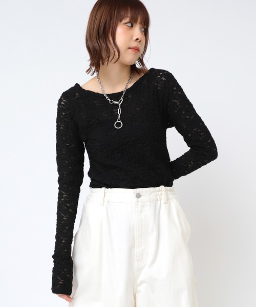 広めのネックラインでレイヤードしやすいシアーロンT■POINT■Tシャツとレイヤードしたときに、襟元が見えないように、ネックラインの広いデザインにしています。伸縮性のあるジャガード柄がトレンド感のあるシリーズです。■STYLING■ネックラインが広いトップスや、レース素材がトレンドにあるシーズンなので、RNAらしいメンズライクなボトムスと合わせてのMIXコーデがおすすめ。■COLOR■ホワイト・ブラック・ライトイエロー▼シリーズアイテムM2307 フラワージャガードT生地感:やや薄い・やわらかい透け感:透ける伸縮性:あり裏地:なし※こちらは参考情報となります。多少の誤差はご了承ください。----------------------------------------------------------------------◆◆お気に入り登録しておすすめ情報をゲットしよう◆◆【商品のお気に入り登録】再入荷、残り1点、セール、タイムセール、クーポンなど、いち早く受け取ることができます。【ショップ・ブランドのお気に入り登録】新商品、予約商品、再入荷、ショップのおすすめトピックスなど、ショップ・ブランドの最新情報を受け取ることができます。----------------------------------------------------------------------※画像の商品はサンプルです。実際の商品と仕様、加工、サイズが若干異なる場合がございます。※撮影場所により、光の当たり具合で色味が異なって見える場合がございます。商品写真はできる限り実物の色に近づけるようにしておりますが、実際の商品と色味が異なる場合がございます。カラーは商品の掛け画像をご参照下さい。