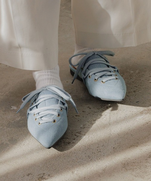 気軽に合わせたいヘルシーな大人ミュール ロングシーズン活躍!デイリーに取り入れやすいフラットミュール。 【デザイン】 ポインテッドトゥ×レースアップの組み合わせが今年らしく、ローヒールがすっきりと大人っぽい印象に。 程よいアクセントにちょうど良い、レザー調のシルバー(15)とデニム生地のブルー(80)の全2色展開です。 【機能】 手を使ったりしゃがまずにさっと脱ぎ履きがしやすいため、忙しい朝やちょっとしたお出かけにも便利です。 【おすすめスタイリング】 フルレングスパンツからちらっと見せたり、ワンピース合わせで抜け感をプラスしたり、幅広いテイストにぴったり! きちんと感を残しつつ、軽やかな足元に仕上げてくれます。 素足にはもちろんソックス合わせも可愛く、春~秋口までロングシーズン楽しめます。 ※屋外の光や照明の当たり具合で、実物と色味が異なって見える場合がございます。詳細画像の色味をご確認ください。