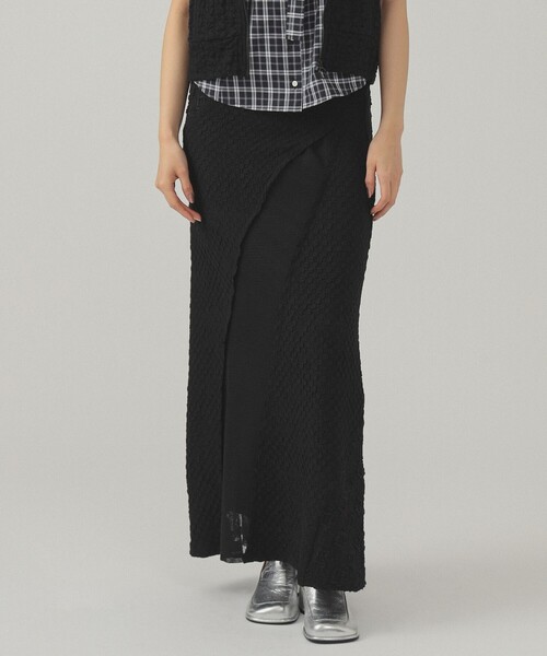 上品な華やかさと軽やかさを両立 ■デザイン 3種類の異なる生地を組み合わせた、個性的なカットソースカート。アシンメトリーな切り替えデザインが、動きに合わせて揺れ、表情豊かなシルエットを演出。メッシュ部分のラフな切りっぱなしが、抜け感をプラスし、トレンドライクな印象を与えます。 ■コーディネート 足元は、スニーカーでカジュアルダウンしたり、パンプスでエレガントに仕上げたり、気分に合わせて楽しんでいただけます。 ■サイズ 体のラインを拾いすぎない、ややタイトなシルエット。 ■素材 フクレジャカードとメッシュ生地の異素材ミックス。 ■ケア方法 洗濯可 (詳細は商品についている品質表示ラベルをご覧ください) 【IVORY】Model:H172 B81 W60 H90 Size:(画像の商品はサンプル用サイズのため実際のサイズ感と異なります) 【BLACK】Model:H169 B77.5 W59 H89 Size:(画像の商品はサンプル用サイズのため実際のサイズ感と異なります) ※光の当たり具合やパソコンなどの閲覧環境によって、実際の色味と異なって見える場合がございます。予めご了承ください。 ※商品の色味は商品単体で撮影した画像をご参照ください。