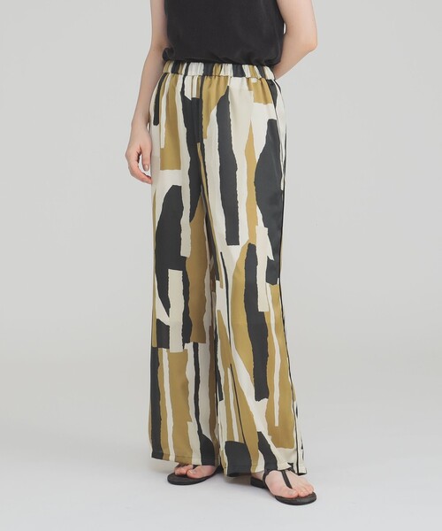 リラックス&モードなイージーパンツ ■デザイン 全面プリントが印象的なイージーパンツ。シルエットはベーシックに仕上げつつ、サイドのブラックサテンのパイピングがアクセントに。ウエストは内側のドローコードで調整が可能です。 ■コーディネート シンプルなトップスと合わせて柄を主役に。ジャケットやシャツと合わせればモードな着こなしにも。 ■ディテール ドライタッチな裏地付きで透け感を気にせず着用可能。 ■サイズ ワイドシルエットで脚のラインを拾わず、リラックス感のある穿き心地です。 ■素材 フランス、SPRINTEX社のインポートプリント生地を使用。ポリエステル100%の光沢感が、カジュアル過ぎないラグジュアリーな雰囲気を演出します。 ■ケア方法 手洗い可(詳細は商品についている洗濯表示タグをご覧ください。) BEAMS STAFF:H162 Size:38 ********************** 生地の厚さ:やや薄手 透け感:なし 伸縮性:なし 光沢感:あり 裏地:あり ********************** 【スタッフレビュー】 Demi-Luxe BEAMS スタッフ 身長:168cm / 普段サイズ:38 / 着用サイズ:38 サイズ感: ゆとりのあるシルエットで、くるぶしまで隠れる丈感。 素材感: 滑らかな肌触りで、裏地が膝下まであるので快適に着用できそうです。 ポイント: 夏らしくメリハリのあるプリントが、コーディネートのアクセントにぴったり! Demi-Luxe BEAMS スタッフ 身長:162cm / 普段サイズ:36 / 着用サイズ:38 サイズ感: いつもは36ですが、長めの着丈が好きなので38でちょうど良いです。 素材感: 暑い時期でもサラッと着られる素材感です。 ポイント: ゴムとドローコード仕様なのでサイズ調整がしやすいです! ※光の当たり具合やパソコンなどの閲覧環境によって実際の色味と異なって見える場合がございます。予めご了承ください。