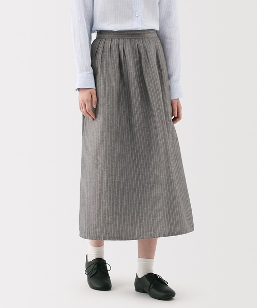 涼やかなヘンプと、綿を使用しやわらかな風合いに仕上げました。綿はオーガニックコットンです。 【素材】 麻特有の肌触りを生かしながら、オーガニックコットンを混ぜることで、やわらかで心地良い風合いに仕上げました。 【デザイン】 前面のタックが特長のフレアスカートです。ウエスト部分はトップスをインしても美しいラインが保てるように仕立てました。後ろウエストはゴム仕様で、快適な履き心地を実現しています。 【仕様】 透け感:なし 伸縮性:なし ウエストの仕様:後ろゴム入り ポケットの仕様:脇ポケットあり 裏地:なし お取扱い上のご注意 : ●濃色製品は使用中の摩擦や濡れた状態での接触により色移りする事があります。洗濯の際は他のものと分けて洗ってください。 お取扱い上のご注意2 : ●素材の特性上、織ムラ、糸節、多少の色差がありますのでご了承ください。●強い摩擦や濡れた状態で摩擦されると毛羽立ちが生じます。また、濃色製品は毛羽立ち部分が白っぽく見えることがありますのでご注意ください。 お洗濯上のご注意 : ●淡色製品には蛍光増白剤入り洗剤を使用しないでください。 お洗濯上のご注意2 : ●洗濯ネットをご使用ください。 お洗濯上のご注意3 : ●プリント部分はアイロンでこすらないでください。