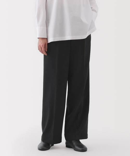 程よい厚みとハリ感のある素材に撥水加工を施しました。洗濯後シワが目立ちにくいです。【素材】程よい厚みとハリ感のある素材を使用し、撥水加工を施しています。洗濯後のシワが目立ちにくくお手入れが楽なので、日常使いで活躍します。【デザイン】ウエスト後ろ部分にストレッチ性のある芯を使用し、タックインしてもきれいなウエストラインを保ちます。フロント部分のタックとセンタープレスで、レッグラインをすっきり見せます。きれいめにもカジュアルにもコーディネートすることができます。【仕様】透け感:なし (オフ白はややあり)伸縮性:ややありフィット感:普通股上の深さ:普通※オフ白はやや透け感のある色味のため、肌の色に近い色のインナー着用をおすすめいたします。【こちらもおすすめ】「撥水テーパードパンツ」・「撥水テーラードジャケット」もおすすめです。お取扱い上のご注意 : ●濃色製品は使用中の摩擦や濡れた状態での接触により色移りする事があります。洗濯の際は他のものと分けて洗ってください。お取扱い上のご注意2 : ●はっ水(水をはじきやすい)洗濯・クリーニングにより徐々にはっ水効果がなくなります。お取扱い上のご注意3 : ●素材の特性上、引っ掛かりにご注意ください。お取扱い上のご注意4 : ●この商品は本体に再生ポリエステルを30%使用しています。お取扱い上のご注意5 : ●この製品のセンタープレスは永久的なものではなく着用や洗濯により消失しますのでご了承ください。お洗濯上のご注意 : ●アイロンはあて布を使用してください。お洗濯上のご注意2 : ●プリント部分はアイロンでこすらないでください。