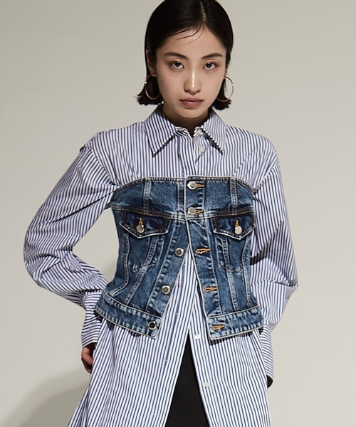 〈デザイン〉 ・Gジャンをモチーフにしたデニムビスチェトップス ・バスト上を大胆にカットアウトし、メンズGジャンをシェイプした様なデザイン ・背面はレースアップディテールでサイズの調整が可能。 ・タイトフィットシルエット ・ステッチやエッジに残るあたりが独特な表情をもつ加工デニムを使用 〈素材〉 透け感 なし 裏地 なし 伸縮性 なし 洗濯:洗濯機可 メーカー品番:1C015-0325-22 JOHN LAWRENCE SULLIVANW 2003年、テイラードを基軸にしたメンズウェアブランドとしてスタート。強さとエレガンスが同居する男性像をコンセプトに置きながら、常にテイラードスタイルの拡張を図り、メンズウェアの可能性を追求し続けている。2007年春夏シーズンには東京コレクションに参加。2010年春夏シーズンからはレディースラインもスタートさせ、メンズウェアで培ったテイラード技術を取り入れた、シャープで洗練された女性像を表現。2011年秋冬シーズンからはパリ・ファッション・ウィーク、2017年秋冬シーズンからはロンドン・ファッション・ウィークに参加。現在はメンズとレディースをミックスさせたランウェイショーを披露している。 ---------------------------------------------------- 【お買い物をよりお楽しみいただく為に】 ▼商品のお気に入り登録をおすすめします! ♡をクリックしてください。 完売カラーの再入荷や、ラスト1点の通知、セールの際の通知を受ける事ができます。 ブランドのお気に入り登録もご一緒にお願い致します。