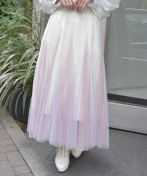 【商品紹介】 ハギが入った切替チュールのスカートです。 フェミニンな裾広がりのフレアシルエットで上品に着こなせるアイテム。 ウエストゴム、裏地は伸縮性がある素材のため、着やすさも◎。 【デザイン】 キナリはピンク・ラベンダーのチュールを切り替えて配色感の楽しめるフェミニンなカラー ミントは濃淡の違うミントカラーでチュールを切り替えた微配色で大人っぽいカラー クロは単色でベーシックに合わせやすさバツグンのカラーです。 【コーディネート】 インナー×羽織シャツなどのカジュアルスタイリングや、ブラウス×カーデのフェミニンスタイリングなど、幅広く合わせらえる万能アイテムです。 ▽ axes femme * アクシーズファム 【Concept】 axes femmeのお洋服であなたのライフスタイルに ほんの少しだけ彩る花が咲きますように。 ブランドを通して、彩る花たちが、 人と人、お客様や作り手たちの想いが世界中に繋がっていきますように。 ベル・エポック(フランスの古き良き時代)にパリジェンヌたちが愛したファッションや文化にルーツをおき、 独自のフェミニンスタイルを楽しむブランド ********************** .。.: お気に入り登録のおすすめ :.。. ∇気になるアイテムを登録∇ ハートをクリックしてお気に入りに登録すると 完売カラーの再入荷やラスト1点の通知、セールの通知を受けとることができます。 ∇ブランドを登録∇ 新商品や再入荷、セール通知など、いち早くブランドの情報を受けとることができます。 是非ご利用頂き、お買い物をお楽しみ下さい。 .。.: 商品について :.。. ・サイト上のカラー名と、お届け商品に記載されているカラー名が異なる場合がございます。 ・商品の色味は、撮影場所や光のあたり具合、お客様のお使いのPCのモニター環境などにより色味が違って見える場合がございます。 予めご了承の上ご注文下さい。 .。.: 返品・キャンセルについて :.。. ・着用、洗濯後の返品は致かねます。 ・商品到着後、着用前に商品を確認して頂きますようお願い致します。