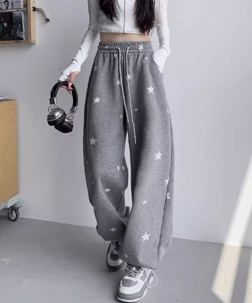 星柄のスウェットパンツはY2Kコーデやストリートコーデ、エンジェルコアコーデにおすすめ!ウエストはゴム仕様のワイドシルエットのルーズスウェットパンツはゆったりとした着心地で透け感もないので、ワンマイルウェアやルームウェアとしても活躍!裾にはドロスト紐が付いているので、お好みに合わせて調節可能です◎タイトシルエットのトップスと合わせて韓国ライクな着こなしがおすすめ!【スタッフが着用してみました!】[スタッフA 155cm/49kg 着用サイズ:M]ゆるっとしたシルエットでルーズに着用できてこの秋大活躍間違いなし◎[スタッフB 160cm/54kg 着用サイズ:L]タイトなトップスと合わせるとバランスよく着こなせます!★POINT★・Y2K・グランジファッション・韓国ファッション・バレエコア・ウィッシュコア・トレンドファッション・エンジェルコア◎商品と特徴◎・カジュアル・ガーリー・モード・キレイめ【WEGO ZOZOTOWN お買い物ガイド】▼商品のお気に入り登録♡をクリック!完売カラーの再入荷通知や、ラスト1点の通知、セールの通知をお知らせします。▼ブランドのお気に入り登録新商品や再入荷、クーポンやセール情報など、いち早くWEGOのお得な情報を受け取ることができます。▼最短で翌日お届け商品をカートに入れた後、注文内容の確認ページで「即日配送」を選択していただければ、最短でご注文した翌日にお届け致します。