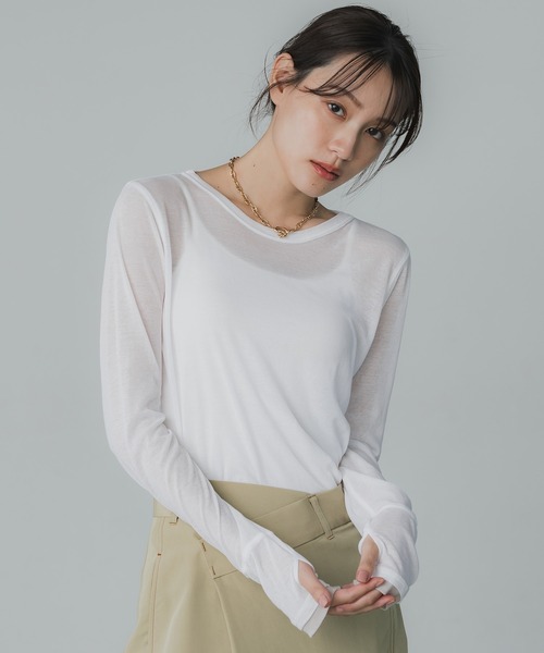 綿100%で着心地抜群抜け感とトレンドを楽しめる必須のシアートップス■デザイン・ワードローブの定番として活躍する万能シアーロンT。・ジャケットなど羽織もののインナーとしてはもちろん、1枚のシンプルなトップスとしても活躍。・袖は少し溜まるようなデザインなので、腕がすっきり長く見え、配色のアクセントに。・親指に穴が開いたサムホール付きなので、袖丈は長め。レイヤードアイテムとしても使いやすいです。・裾はラウンドの切り口になっており、ショート丈ではないながらも、アウトスタイルで腰位置を高く細く見せます。・バックデザインは、縦ラインのパイピング切り替えをほどこしており、背中が広く見えずスタイルアップ&ワンポイントデザインに。■素材・透け感 あり・裏地 なし・伸縮性 あり軽やかで心地よい肌触りのシアー素材でソフトな透け感が、今の気分にピッタリ。【PUBLIC TOKYO】FROM JAPAN TO THE WORLD , ALL MADE IN JAPAN “THE TOKYO CASUAL” 日本の伝統的な技術をベースに、 東京の研ぎ澄まされた感性で創り上げる。 新たな、TOKYO CASUAL BRAND。 一つひとつの生活の瞬間を、美しく彩るベーシックアイテム。 純度の高いジャパンクオリティーが紡ぐ、機能性と着心地。 すべての日常に、優しく寄り添う。 ALL MADE IN JAPAN この価値は、真似できない。 さぁ。TOKYOのスタンダードスタイルを。--------------------------------------------お手入れ方法/手洗い可能--------------------------------------------▼商品のお気に入り登録お気に入りアイテムの値下げ、再入荷、在庫1点などの通知を受け取る事ができます。▼ブランドのお気に入り登録新作商品の再入荷、セール、クーポン配布などのお得な情報を受け取る事ができます。
