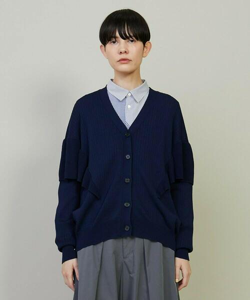 【素材】 程よい光沢感とサラッとしたドライタッチが特徴の糸。 【デザイン】 ゆったりとしたワイドシルエットながらコンパクトめな着丈で重過ぎずスッキリとしたシルエットのカーディガンはベースの編み地に凹凸感のある繊細なストライプ上の柄を入れ込み、両肩から脇にかけてドレープの効いたフリルパーツを付けています。 糸や編み地の持つキレイな光沢感とドレープ感で大人っぽい雰囲気に仕上がっています。 【ブランド情報】 FRAPBOIS/フラボア 2001年にブランドスタート。 「大人げない大人の服」をコンセプトに、大人が着るリラックスしたデイリーウェアを提案するコレクションブランド。 レディースとメンズのアイテムをご用意しています。 ---------------------------------------------------------------------- 【お気に入り登録】がおすすめです。 ■商品のお気に入り登録 再入荷、残り1点、セールなどの通知を受け取ることができます。 →商品ページ ♡ をクリック ■ショップのお気に入り登録 新商品や再入荷、セール、クーポン配布、ショップニュースなど、いち早くショップの情報を受け取ることができます。 →「♡お気に入りショップに追加」 をクリック ----------------------------------------------------------------------