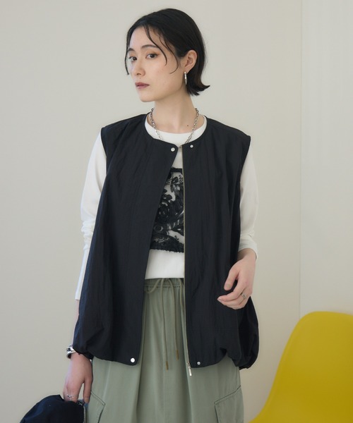 立体シルエットが魅せる、モードなバルーンジレ<POINT>バルーンシルエットがモード感を引き立てる洗練デザイン。後ろが少し長めのシルエットで、抜け感と動きをプラス。センターファスナー仕様で、前開き・閉じてのアレンジが自在。透け感のある軽やかな素材が、レイヤードスタイルにぴったり。さらっと羽織るだけで、シンプルコーデを格上げ。【デザイン・シルエット】丸みを帯びたバルーンシルエットが、モードな雰囲気を演出するジレ。後ろが少し長めのデザインで、動きのある立体的なシルエットに。センターファスナー仕様で、開けても閉じてもバランス良く着こなせます。ゆったりとしたフォルムながら、軽やかな着心地で抜け感のある印象に仕上げています。【素材感】ナイロン100%の軽やかで透け感のある素材を採用し、涼しげで軽快な着心地。裏地にはポリエステル×ポリウレタンを使用し、さらりとした肌触りと程よいハリ感を実現。シーズンレスで活躍する、軽くてストレスフリーな仕上がりが魅力。【カラー】ブラック(1色展開)【スタイリング】シンプルなTシャツやタンクトップの上に羽織るだけで、モードな着こなしに。ロングスカートやワイドパンツと合わせて、リラックス感のある大人スタイルを演出。デニムと合わせれば、カジュアルながらも都会的な印象に。ワンピースの上からレイヤードすると、抜け感のあるトレンドライクなスタイルが完成。【ディテール】裏地: あり光沢: なし伸縮性: なし透け感: あり生地の厚さ: 薄手ポケット: あり【Dignite collier】30代のリアルクローズを実感していただくために生まれたブランドです。SWEET x COOL CASUAL x MANNISH AGELESS SEASONLESSなど常識にとらわれない、私が着て、私らしく、私が好きになれる服。そんなアイテムを提案します。※照明の都合上、多少の色ブレが生じる可能性がございますので、予めご了承ください。---------------------------------------------------●お気に入り登録でお得情報を手に入れよう!「商品のお気に入り登録」をすると、再入荷通知や、ラスト1点の通知、セールの通知など、お得情報が届きます。また、マイページでいつでも確認が可能になります。「ブランドのお気に入り登録」をすると、新商品や再入荷、などいち早くブランドの最新情報をお届けします。ぜひ、ご利用ください。----------------------------------------------------