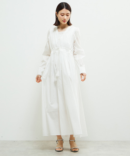 襟元と袖口にスカラの刺繍を施していて 裾に向かって広がる分量感がインドらしいデザインワンピース。 ウエストに紐が付いていて少しだけ調整が出来ます。 ■fabric インド綿らしいタッチの60コットンローン