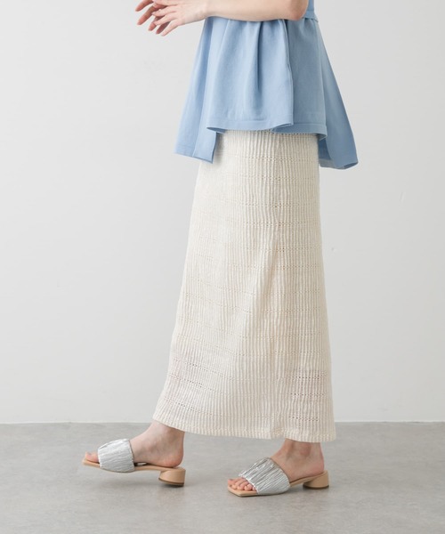 シーズンらしさでコーデ華やぐ抜け感アイテム! 〇細かいプリーツですっきり見え 〇ウエストゴムでストレスフリーな履き心地 〇ナチュラルな表情をもつ表面化のある素材 styling レース素材に細かいプリーツを施した贅沢な一着。ストレスフリーな履き心地で足さばきもよく、すっきりとしたシルエットでコーディネートの幅も広がります。コンパクトなトップスからゆったりとしたシルエットはもちろん、デニムなどの素材にコントラストを付けた装いもおすすめです。 【2025 Spring/Summer】【25SS】 ※この商品は素材及び編地の性質上、着用中、着脱時、及びアクセサリー等で引きつれ、引っ掛かり易い為、取扱いにはご注意ください。 ※その他お取り扱いに関しましては、商品に付属のアテンションタグをご覧ください。 ※商品画像は、光の当たり具合やパソコンなどの閲覧環境により、実際の色味と異なって見える場合がございます。予めご了承ください。 ※商品の色味の目安は、商品単体の画像をご参照ください。 ▼お気に入り登録のおすすめ▼ お気に入り登録商品は、マイページにて現在の価格情報や在庫状況の確認が可能です。 お買い物リストの管理に是非ご利用下さい。 素材感 透け感 : ややあり(IVORYのみ) 伸縮性 : あり 裏地 : あり 光沢 : なし ポケット : なし One