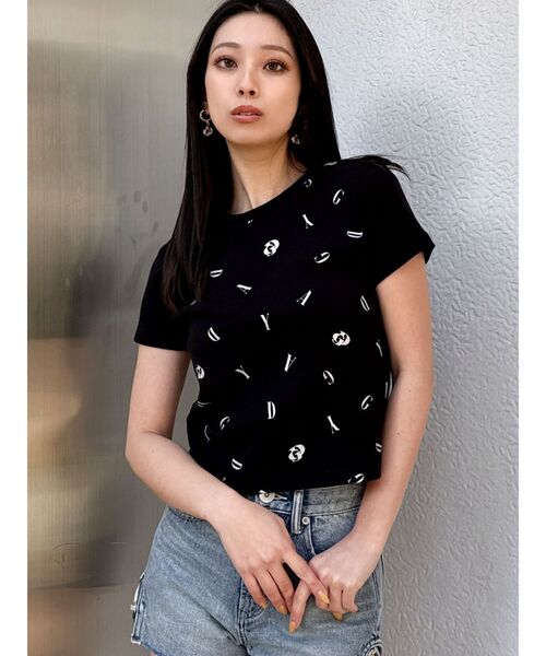 商品コメント: ランダムにGYDAとGDがグリッタープリントされたTシャツです。 ロゴのサイズ感が大きすぎず密集していないので総柄ですが使いやすいデザインになっています。 コーデ: GYDA定番デニム合わせやスカート合わせがおすすめです。 肌寒い季節にはシアーシャツなどのシンプルな羽織りのインナーにもおすすめです。