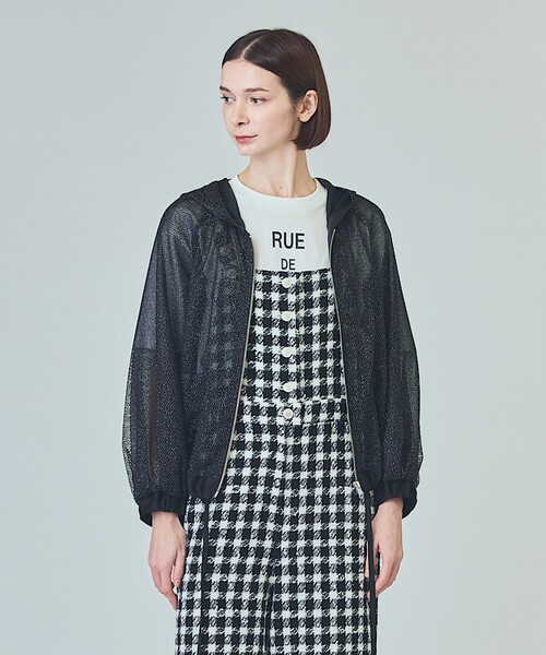 インポートならではの繊細で上質な素材が引き立つ、シンプル&ラグジュアリーなフーディー。 イタリアのCAFISSI(カフィッシ)社の落ち感が綺麗で、細かなラメ混の柔らかなメッシュ素材を使用。 透け感のある涼やかな表情に、分量をたっぷりとったボリューム感が特徴です。 バックスタイルは少しコクーン型にして、着用時にふわっと軽い、愛らしいシルエットに仕上げました。 裾のドローコードでお好みの着こなしアレンジも可能です。 カジュアルなアイテムながら、シティライクに着こなせる大人の魅力が詰まった一枚。 カジュアルなパンツスタイルにさらっと纏うのはもちろんのこと、ワンピースなどに合わせたりと様々なアイテムと着合わせやすい一品です。 ※こちらの画像はサンプル品を撮影しております。実際の商品と仕様、加工、サイズが若干異なる場合がございます。予めご了承くださいませ。 洗濯表示 洗濯不可 漂白不可 タンブル乾燥不可 アイロンは120℃まで 弱いドライクリーニング(石油系)可